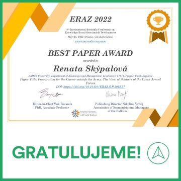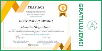Naše vyučující Ing. Renata Skýpalová, Ph.D. získala prestižní ocenění Best Paper Award Winners ERAZ 2022.