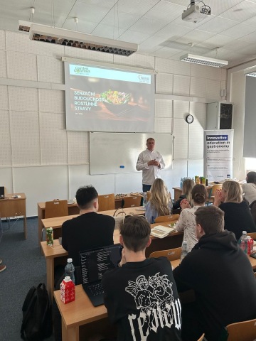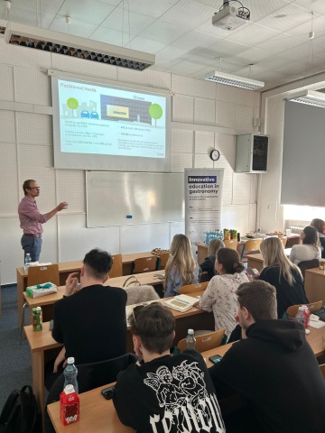 V rámci prezentace byli studenti obeznámeni také s bilingválními studijními texty z oblasti gastronomie, které pedagogové AMBIS vysoké školy připravili v rámci projektu Innovative education in gastronomy to support the sustainability of food systems (InGUPS) 2022-1-SK01-KA220-HED-000087766.